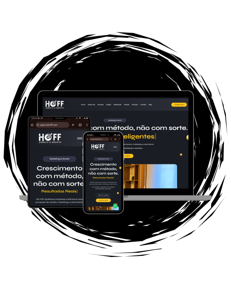 Seu site é a base do seu sucesso digital — e na Hoff, ele nasce com tecnologia, design e estratégia. Desenvolvemos sites rápidos, responsivos e otimizados para ranquear no Google e converter visitantes em clientes. Da estrutura ao visual, cada detalhe é pensado para fortalecer sua marca e entregar a melhor experiência ao usuário. Na Hoff, seu site não é só bonito — é funcional, inteligente e feito para vender.